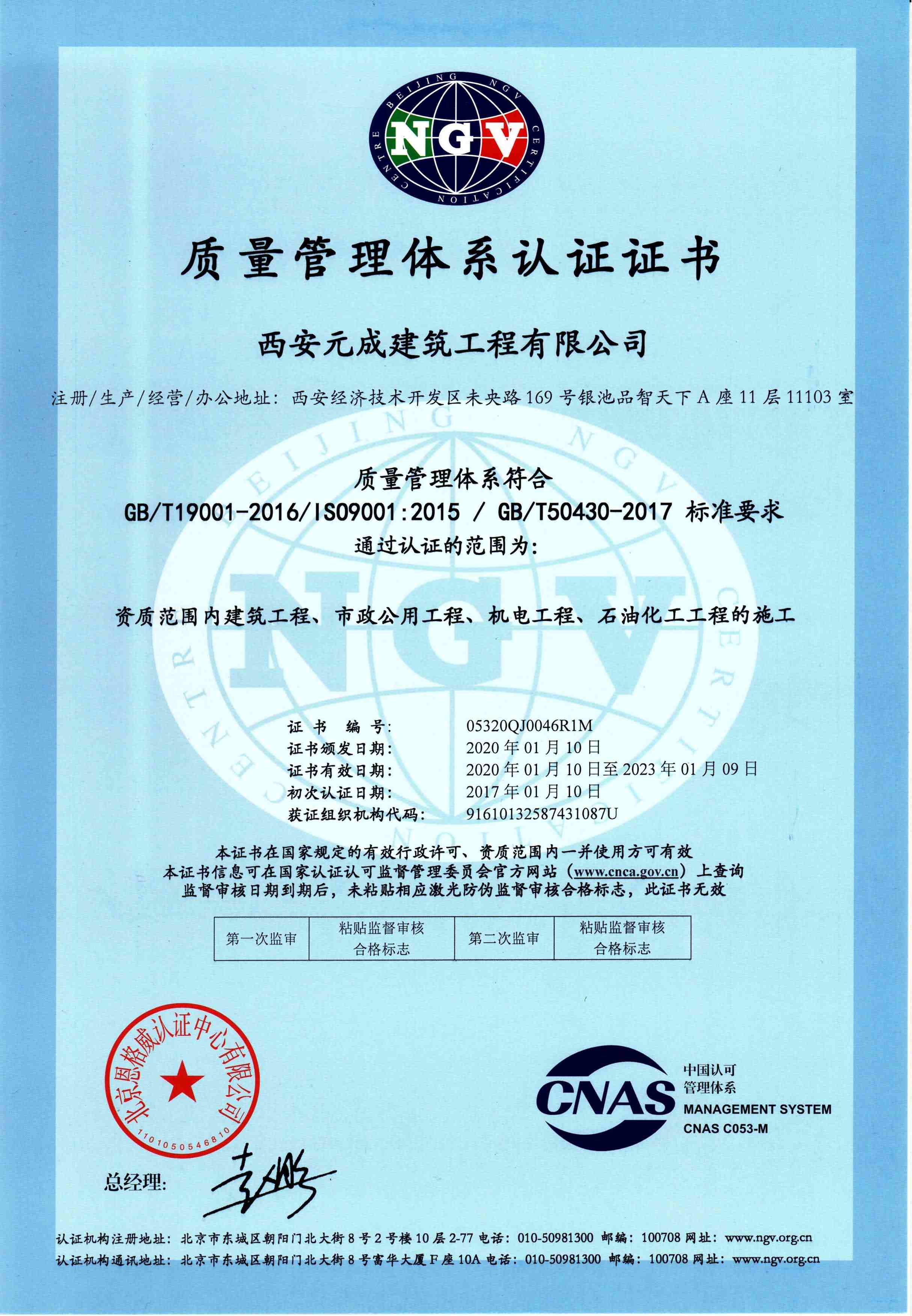西安元成建筑工程有限公司成立于2012年,是一家擁有建筑工程、市政公用工程、石油化工工程、機電工程施工總承包貳級;鋼結構工程、防水防腐保溫工程專業承包貳級;電力工程、水利水電工程施工總承包叁級;建筑機電安裝工程、輸變電工程、環保工程專業承包三級;模板腳手架專業承包、勞務分包等綜合性施工企業。
